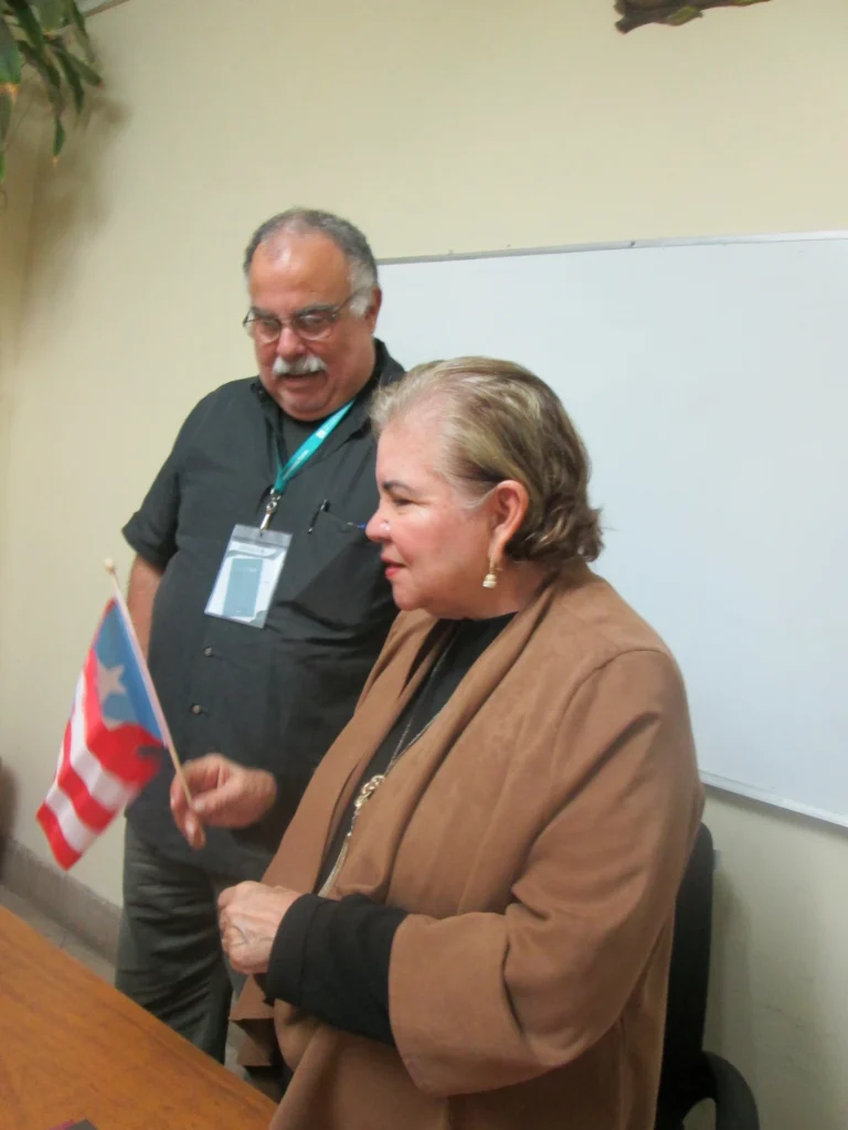 Lucina’s represented us beautifully, meeting and greeting all comers, exchanging news of the Americas, and spending convivial time at the PEN Puerto Rico stand, number HH36 in the international section, which she reports was a lot of fun. 16 writers from Puerto Rican PEN had traveled to the FIL, most of them for the first time. They had a presence there the whole time.
